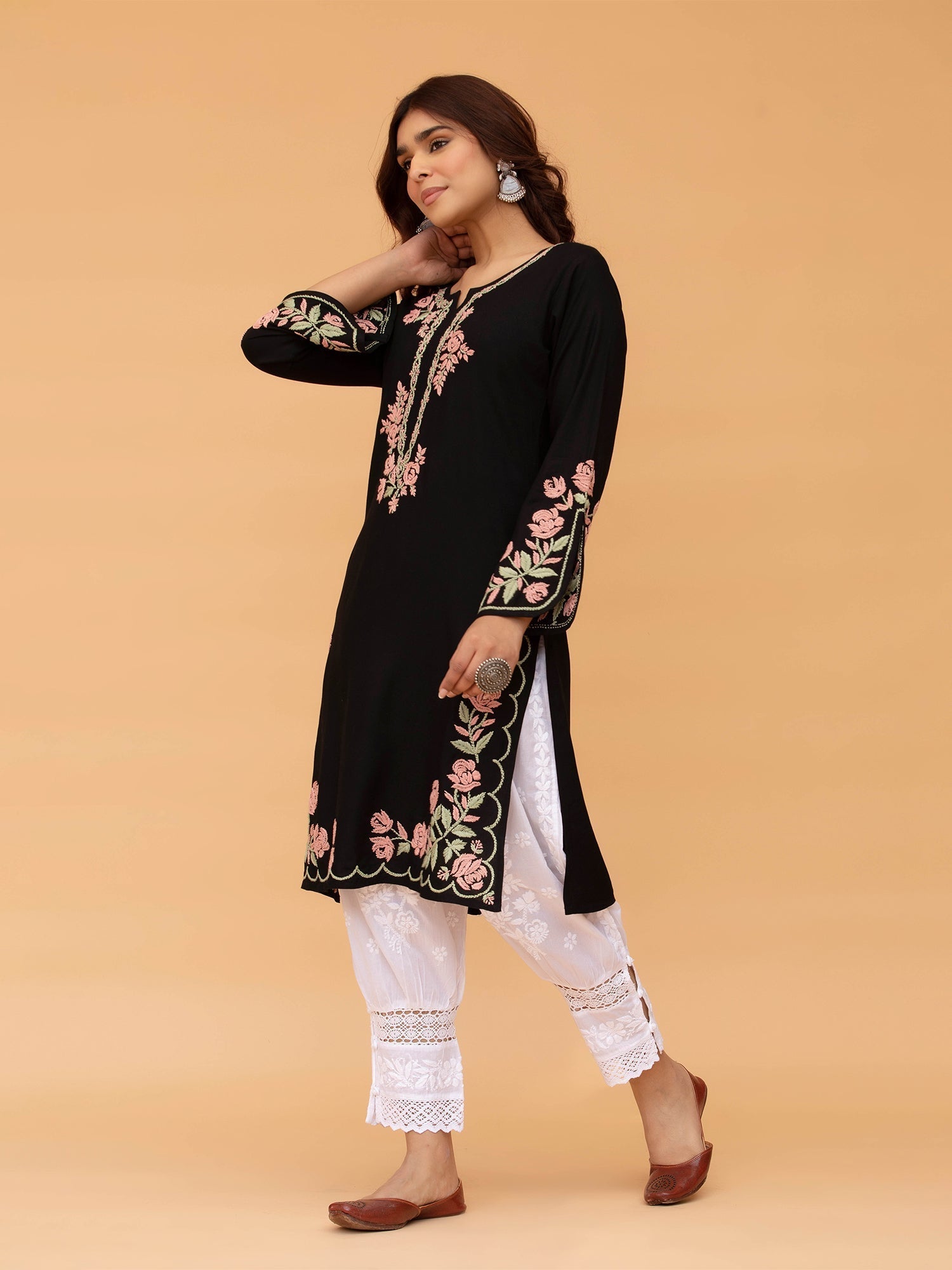 Introducing our elegant Long Chikankari Kurta, a signature piece from our "Saba" collection, meticulously crafted in rayon cotton. Inspired by the gentle morning breeze and the soothing rays of sunlight, this kurta embodies timeless grace and tranquility. Crafted with high-quality rayon, renowned for its softness, breathability, and durability, this kurta promises utmost comfort throughout the day. Each delicate Chikankari stitch is a testament to artisanal craftsmanship and attention to detail, adding a touch of sophistication to your ensemble. Perfect for any occasion, from casual outings to special events, this Long Chikankari Kurta is sure to elevate your style with its effortless charm. Experience the essence of serenity and elegance with our Saba collection, where every piece is designed to inspire and empower.